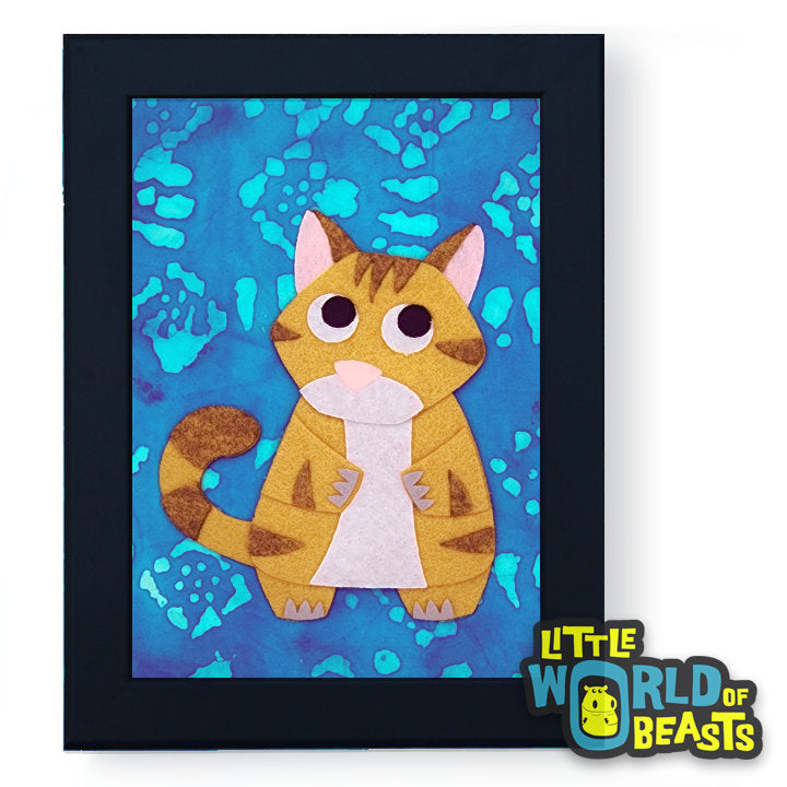 Augustus the Orange Tabby—a purr-fectly whimsical addition to your nursery, kids' room, or any other space that needs a dash of cattitude! This furry, felt feline comes with his very own frame, bringing a splash of color and fun with his paw-somely cute design. Meow-velous!