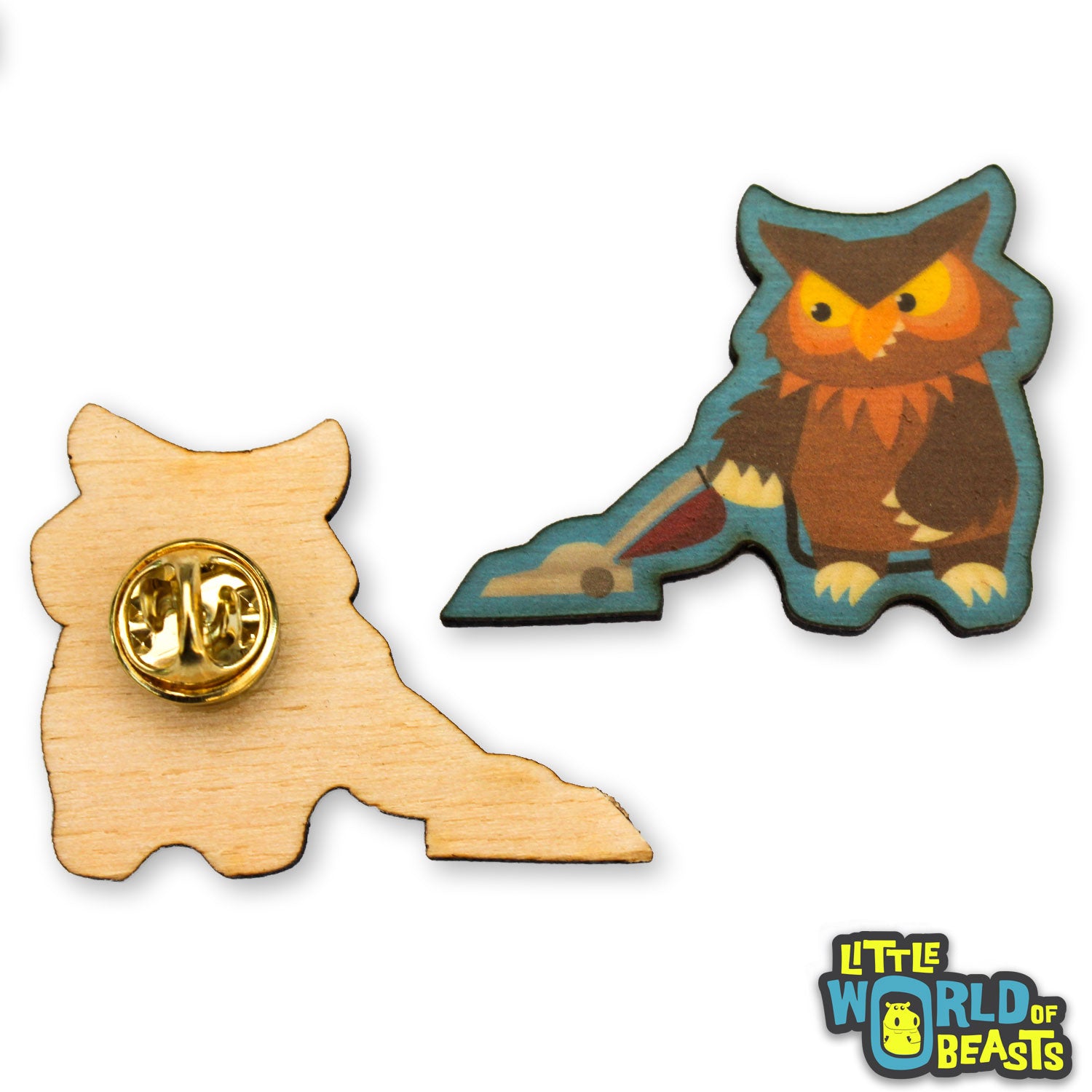 Owlbear Vacuuming - Mundane Monster Wooden Pin